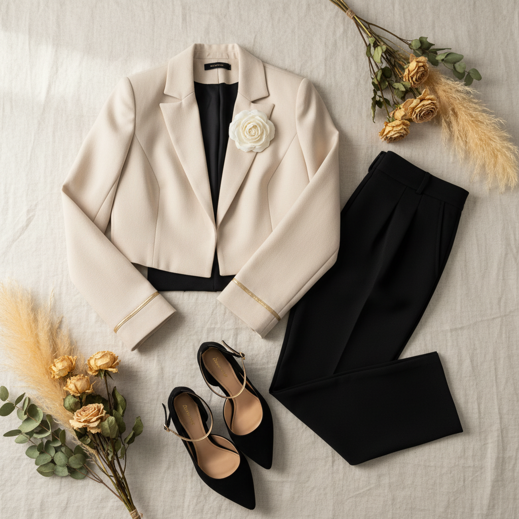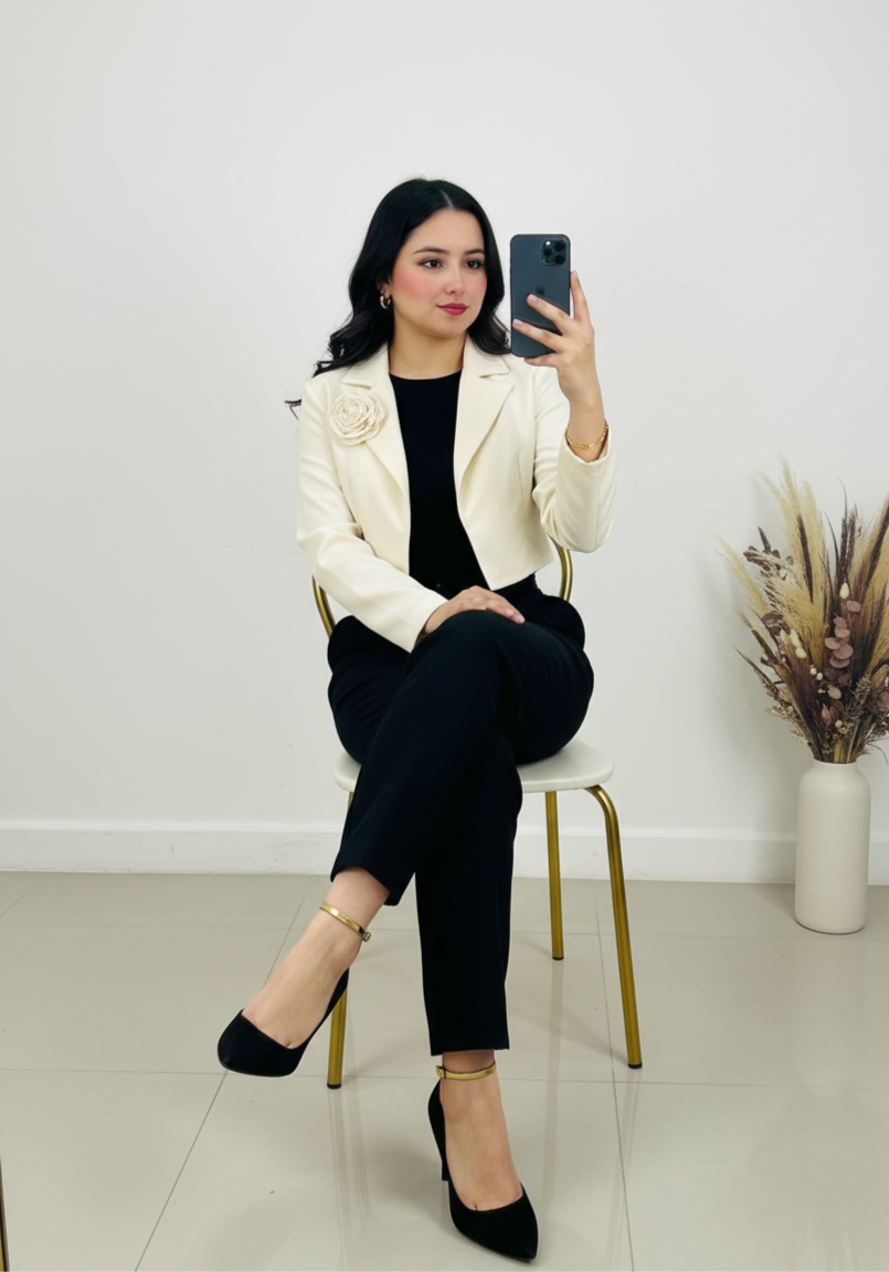 Hermoso y delicado bleizer corto decorado con una flor.