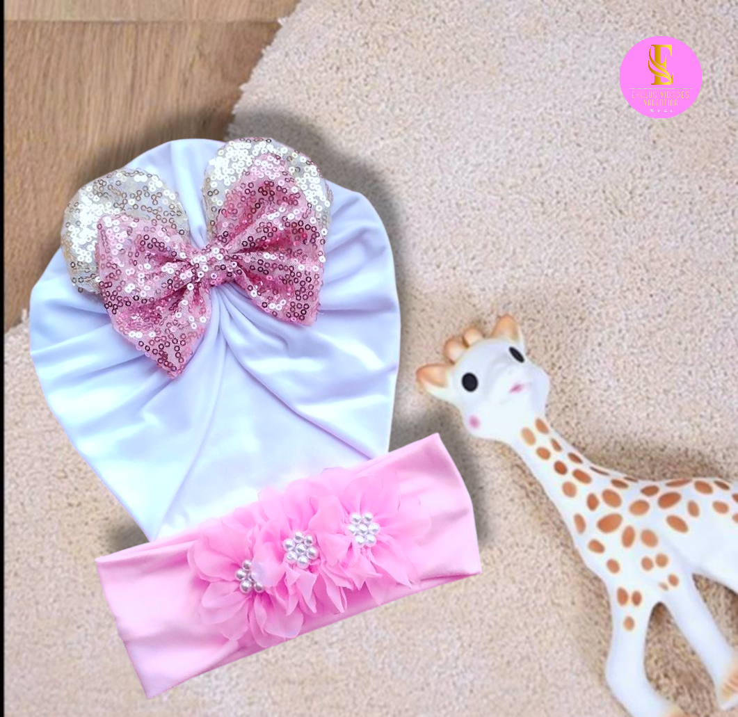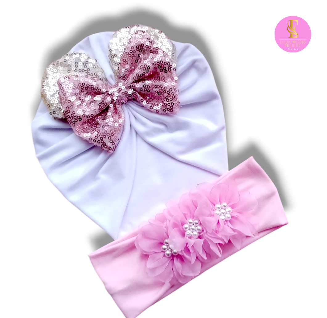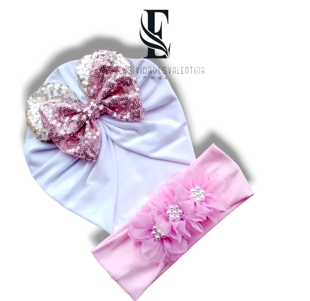 Hermosa gorrita turbante más cintillo para las princesas de la casa.